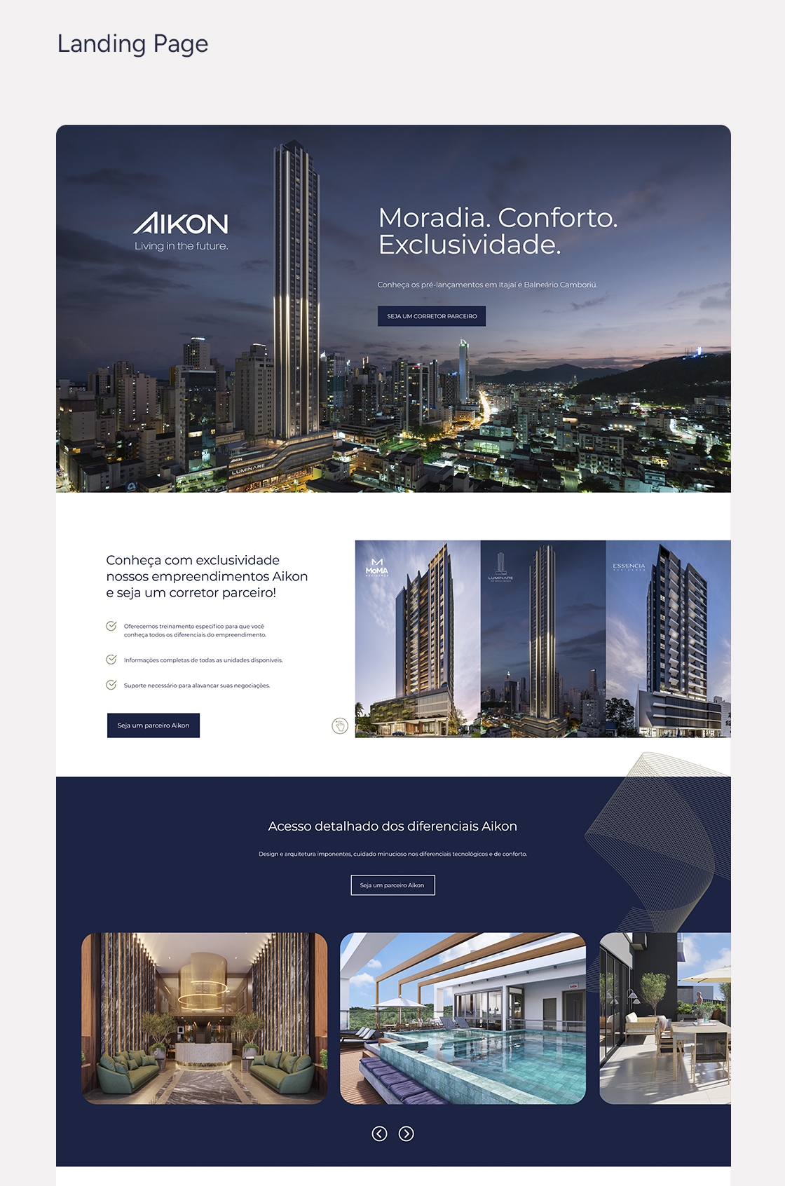 Com a parceria que tivemos com a Aikon Empreendimentos, desenvolvemos em conjunto um site totalmente novo e com a melhor experiência online para os usuários e uma nova identidade. Também construímos um trabalho sólido e moderno refletidos em conteúdos estratégicos e nos diversos formatos aplicados, elevando a autoridade da marca no digital e de uma forma inovadora.