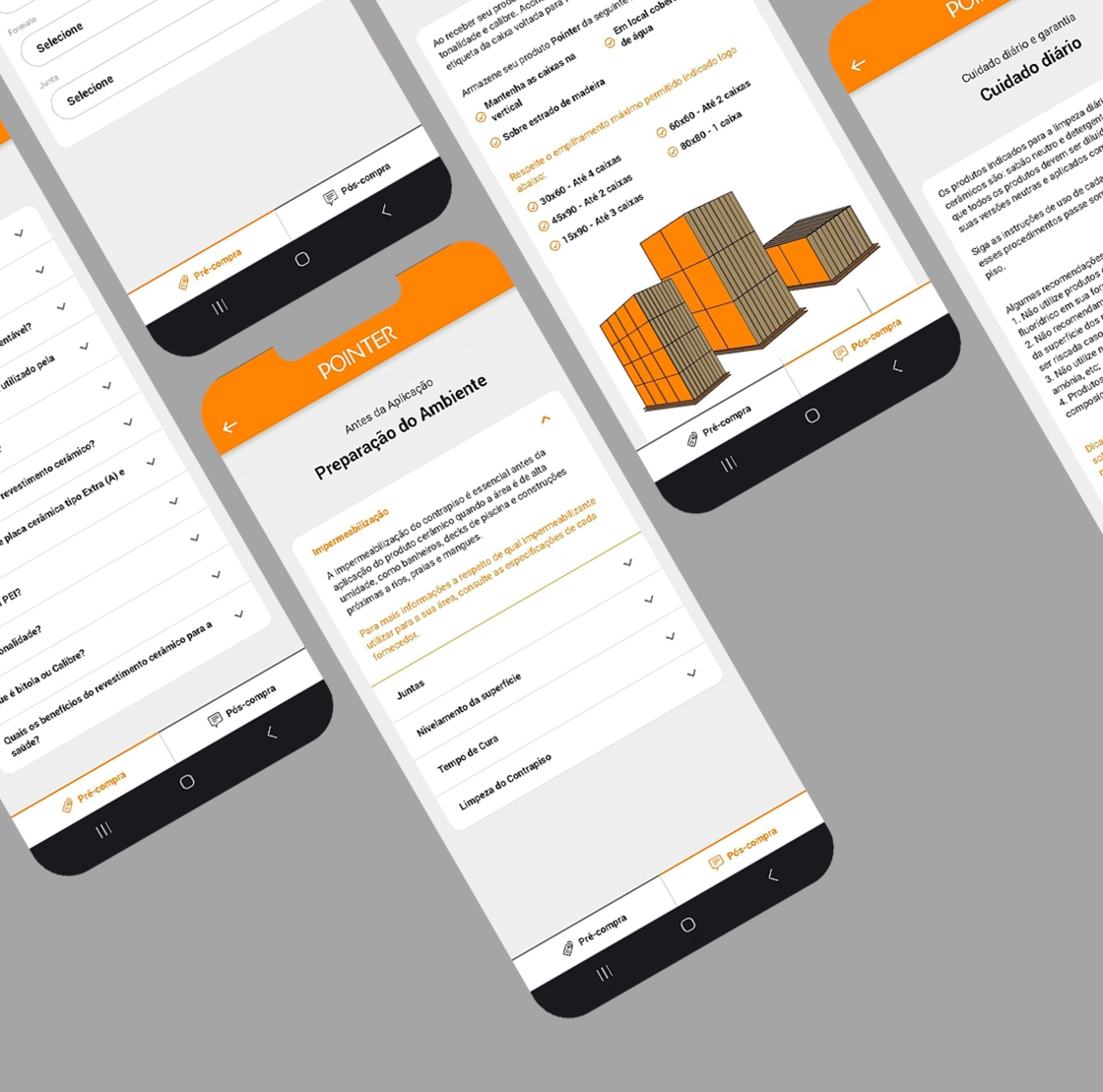 Já no Totem Pointer, criamos a parte de programação e consulta de dados. Os totens ficam alocados fisicamente nas lojas, proporcionando uma experiência imersiva que facilita na escolha de produtos e melhora a experiência do consumidor.