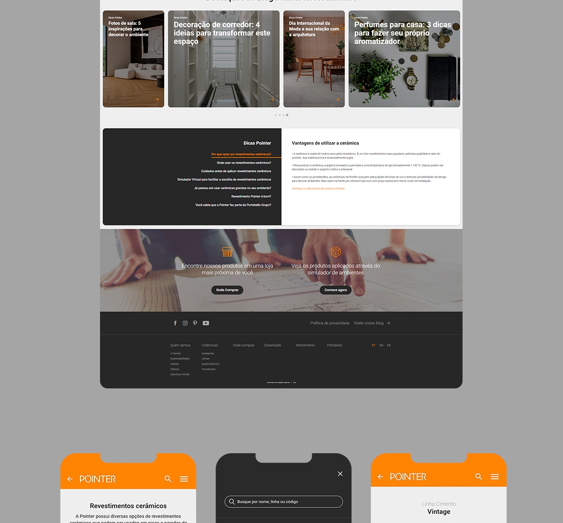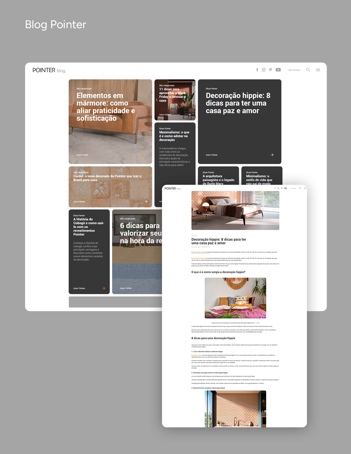 Criamos e desenvolvemos também o Blog da Pointer utilizando a ferramenta WordPress com um tema personalizado, buscando valorizar os conteúdos através de design e fotografias com um layout intuitivo e de fácil navegação.