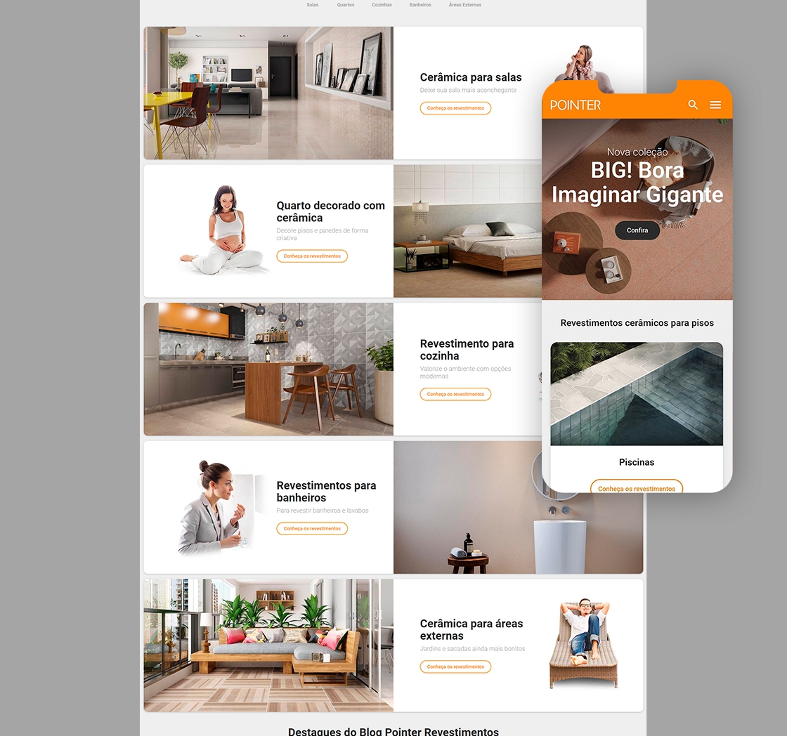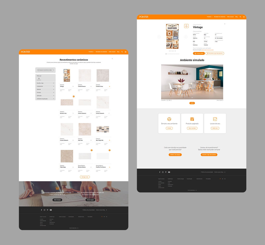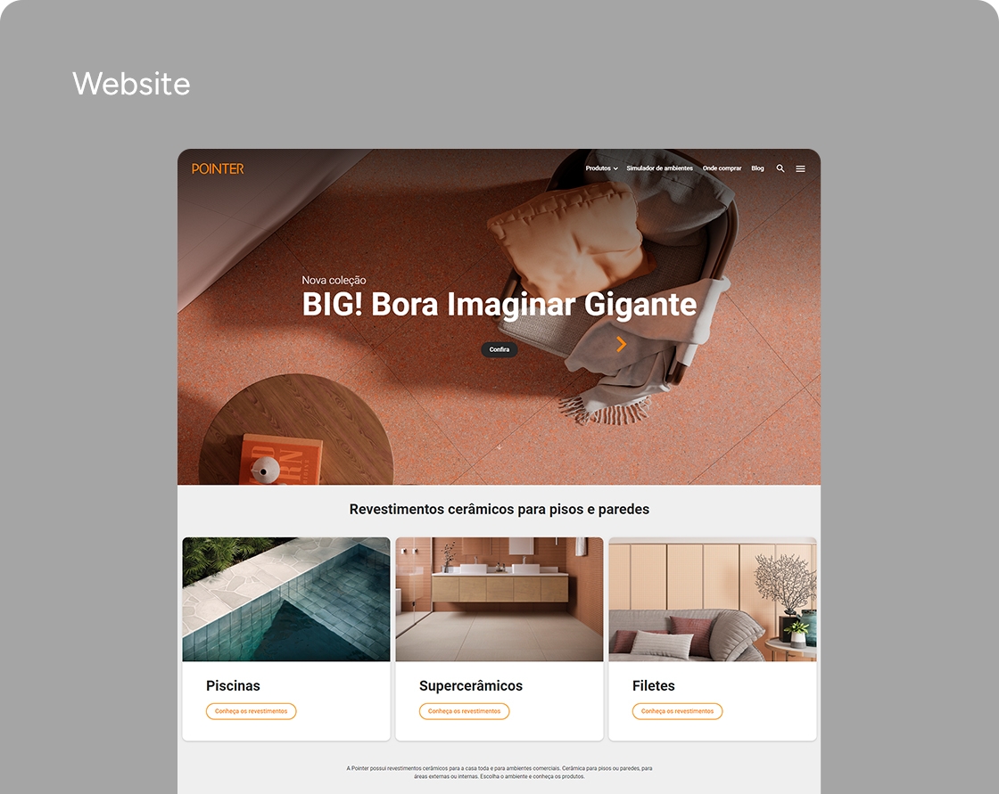 Dentre vários projetos de destaque temos a criação e desenvolvimento do site da marca com catálogo de produtos que possui simulação de ambientes e visualização 3D. Tudo isso pensado para o formato mobile first.